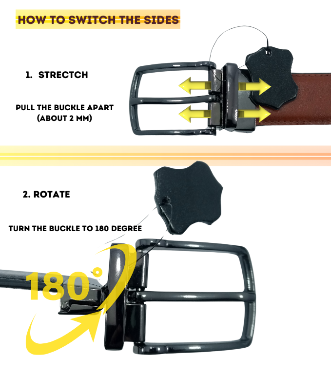 The buckle’s smart design allows you to flip the belt’s color quickly, making it perfect for anyone on the go.