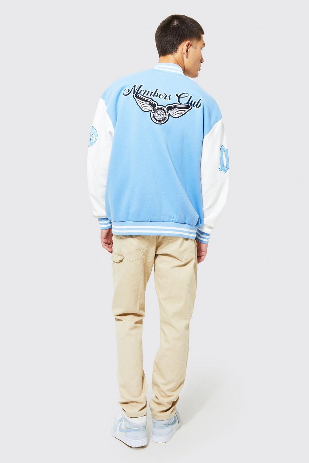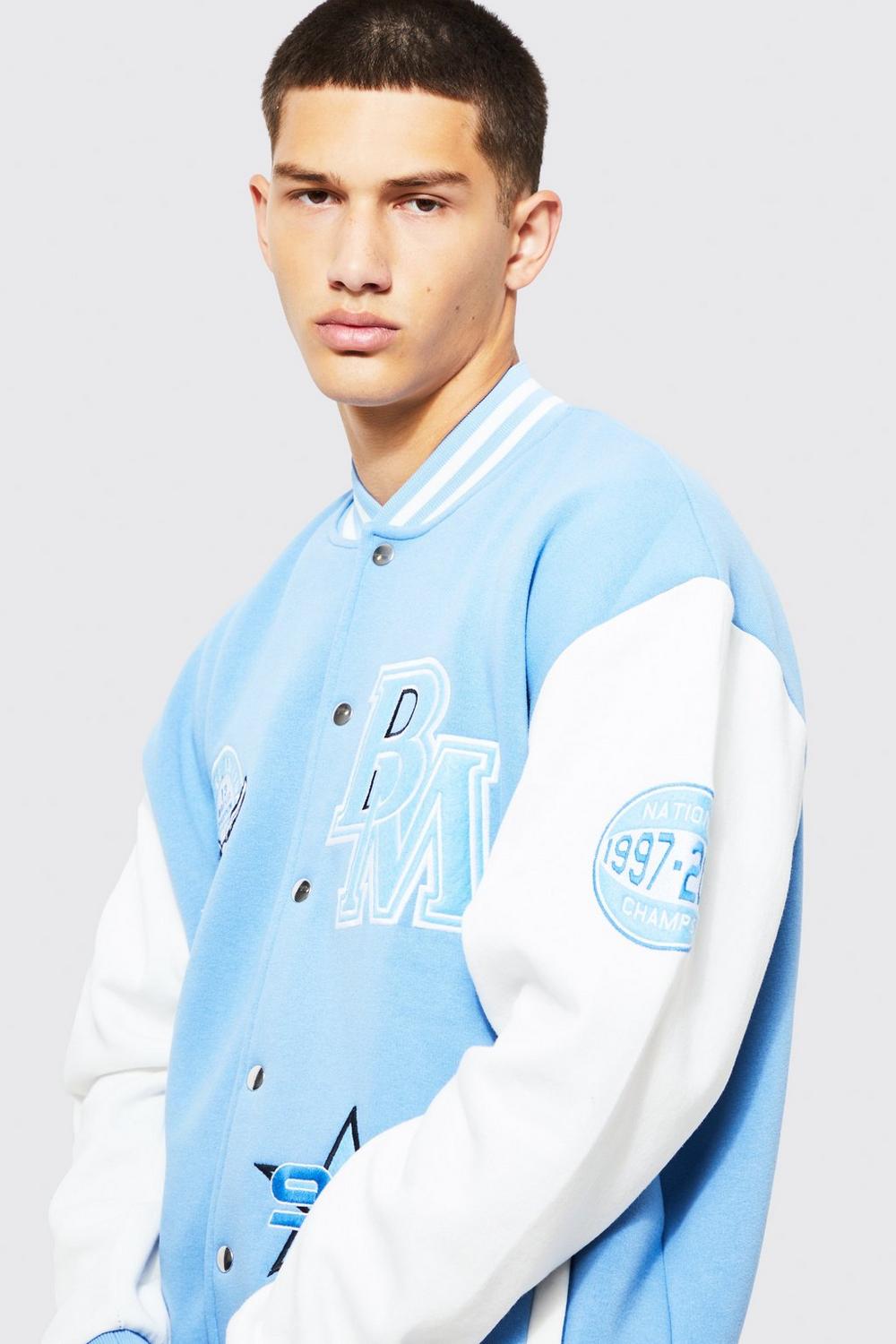 Upgrade your style with this boohooMan retro men’s varsity bomber jacket. Featuring sport-inspired decals and a comfortable cotton-polyester blend, it’s the perfect throw-on piece to elevate any outfit.